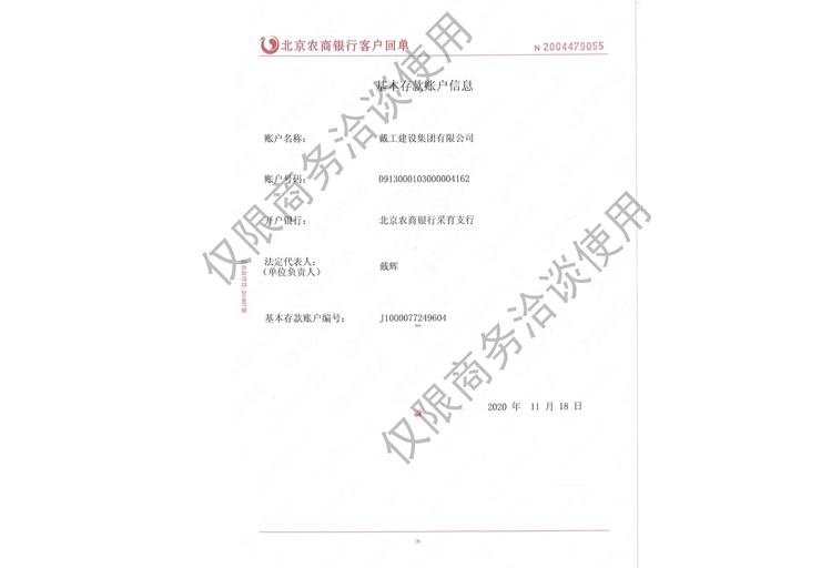 戴工建設集團有限公司,創建于2009年,注冊資本9888萬元人民幣。公司位于北京市大興區。具有建委頒發的建筑裝飾裝修專業壹級,防水保溫工程專業壹級,建筑幕墻專業貳級,消防設施專業貳級,電子與智能化專業貳級,特種工程(結構補強)專業不分等級,建筑機電安裝專業貳級,環保工程專業貳級,鋼結構專業貳級,建筑工程總承包貳級,建筑裝飾工程設計專項甲級,展覽陳列工程設計與施工壹級,展覽展示工程壹級...更多>>
